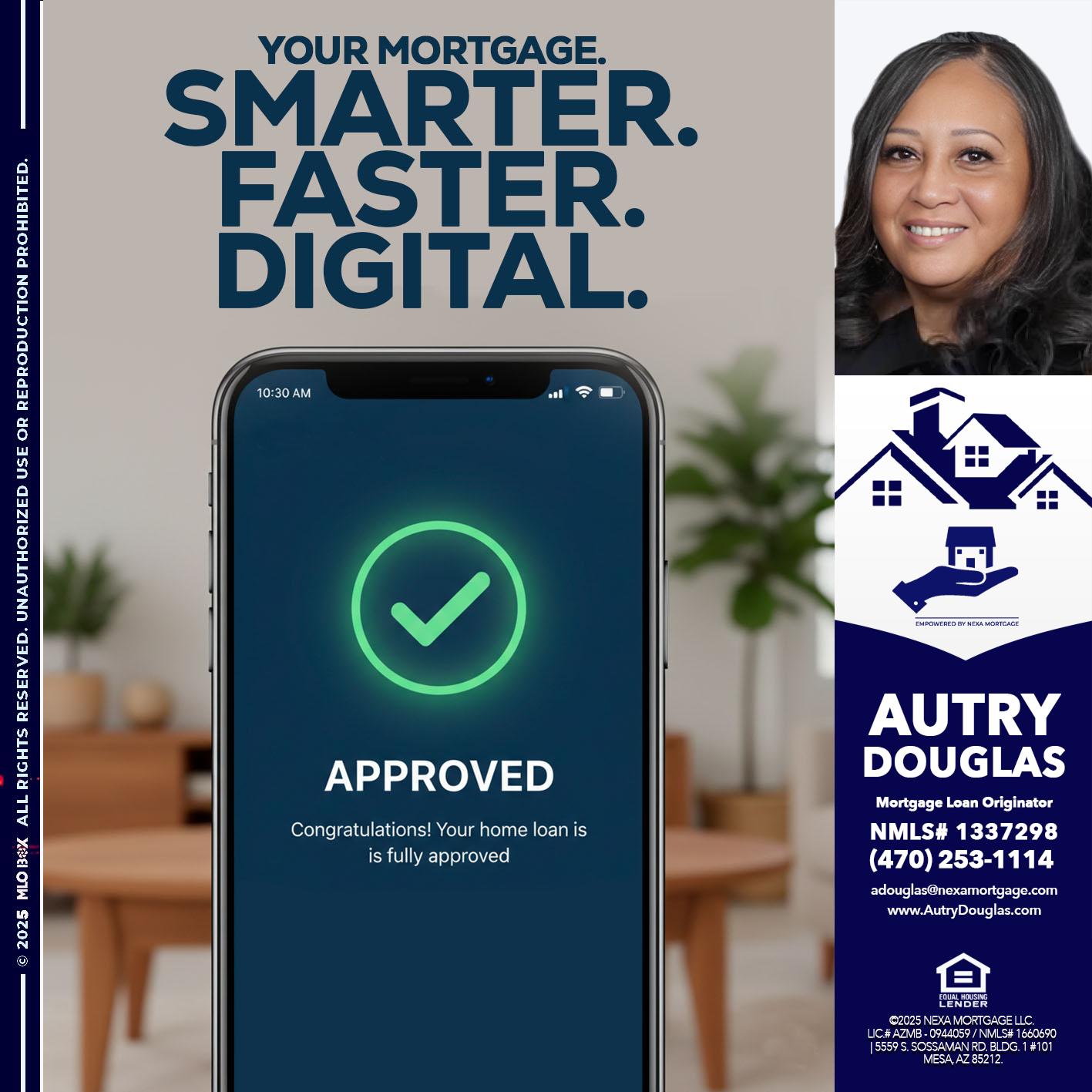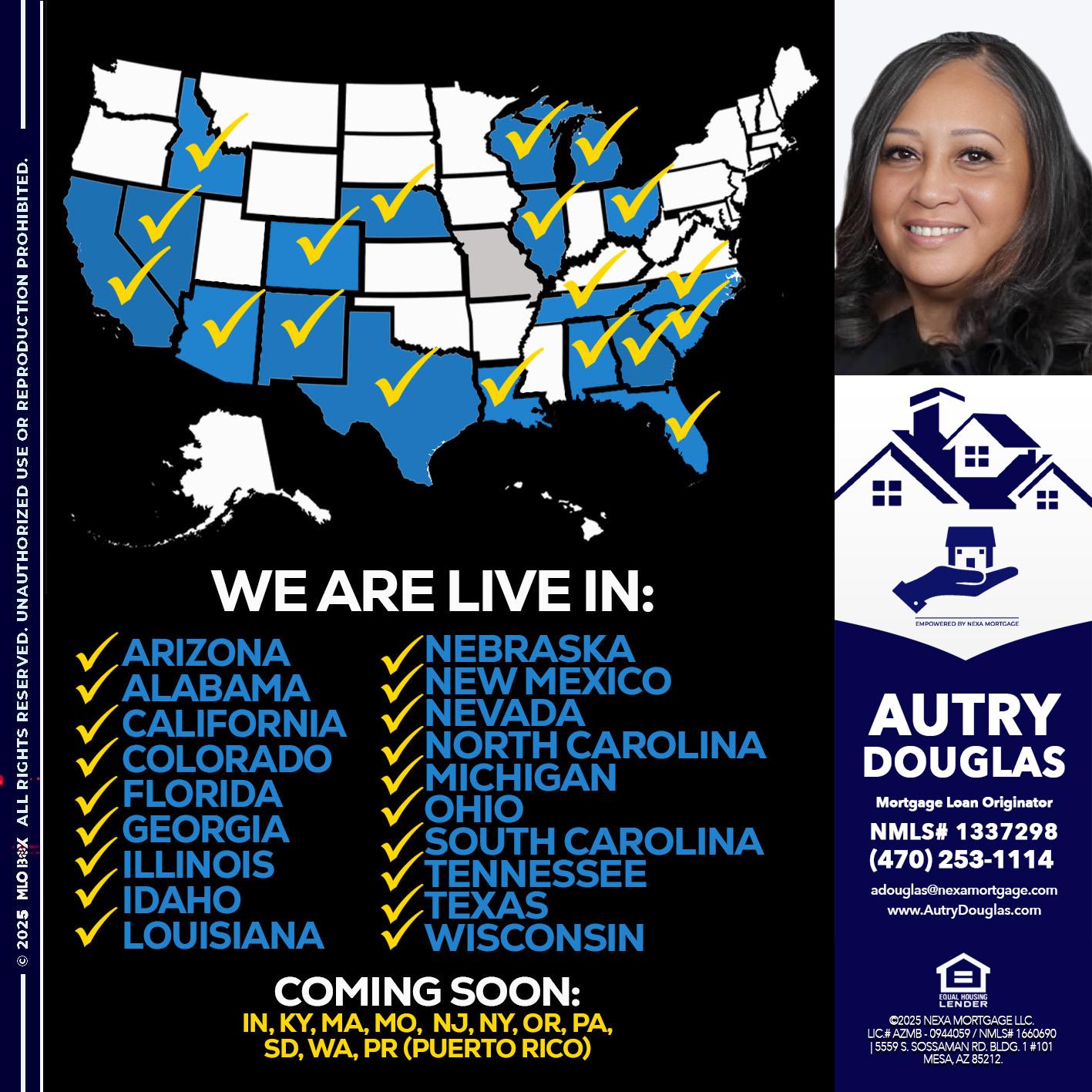 Hi, my name is Autry Douglas. Iβm a Loan Officer with NEXA Mortgage LLC., offering personalized mortgage solutions, fast customized quotes, great rates and service with integrity.