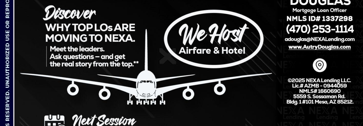 Hi, my name is Autry Douglas. I’m a Loan Officer with NEXA Mortgage LLC., offering personalized mortgage solutions, fast customized quotes, great rates and service with integrity.