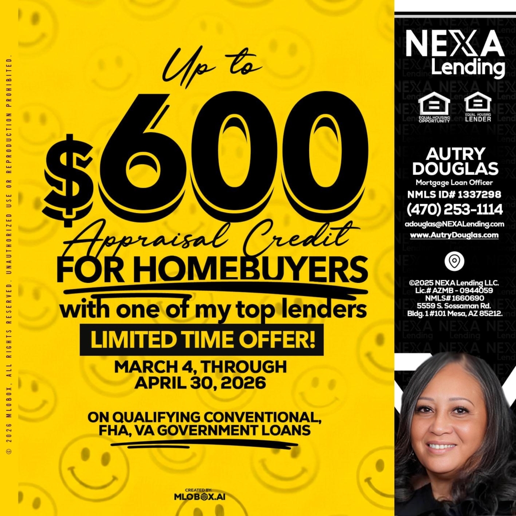 Hi, my name is Autry Douglas. I’m a Loan Officer with NEXA Lending LLC., offering personalized mortgage solutions, fast customized quotes, great rates and service with integrity.