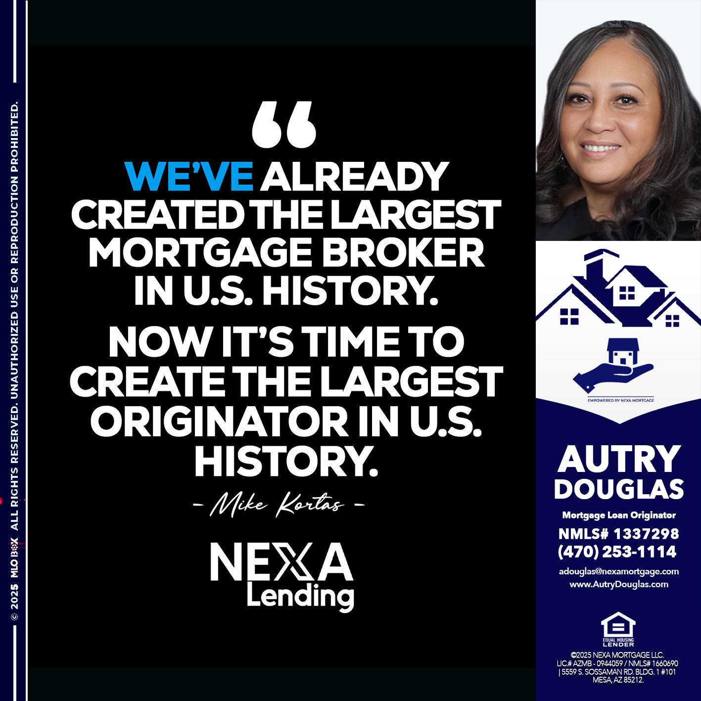 Hi, my name is Autry Douglas. I’m a Loan Officer with NEXA Mortgage LLC., offering personalized mortgage solutions, fast customized quotes, great rates and service with integrity.